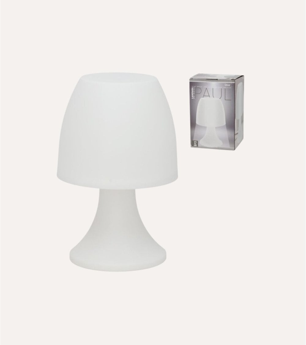 La Lámpara de Mesa Paul Estilo Hongo es una pieza moderna y minimalista que complementa cualquier decoración. Con dimensiones de 12 x 12 x 18.5 cm, esta lámpara está hecha de plástico frosted que proporciona una luz suave y agradable. Su base más ancha asegura estabilidad sin sacrificar el estilo. Es perfecta para salas de estar, dormitorios u oficinas.