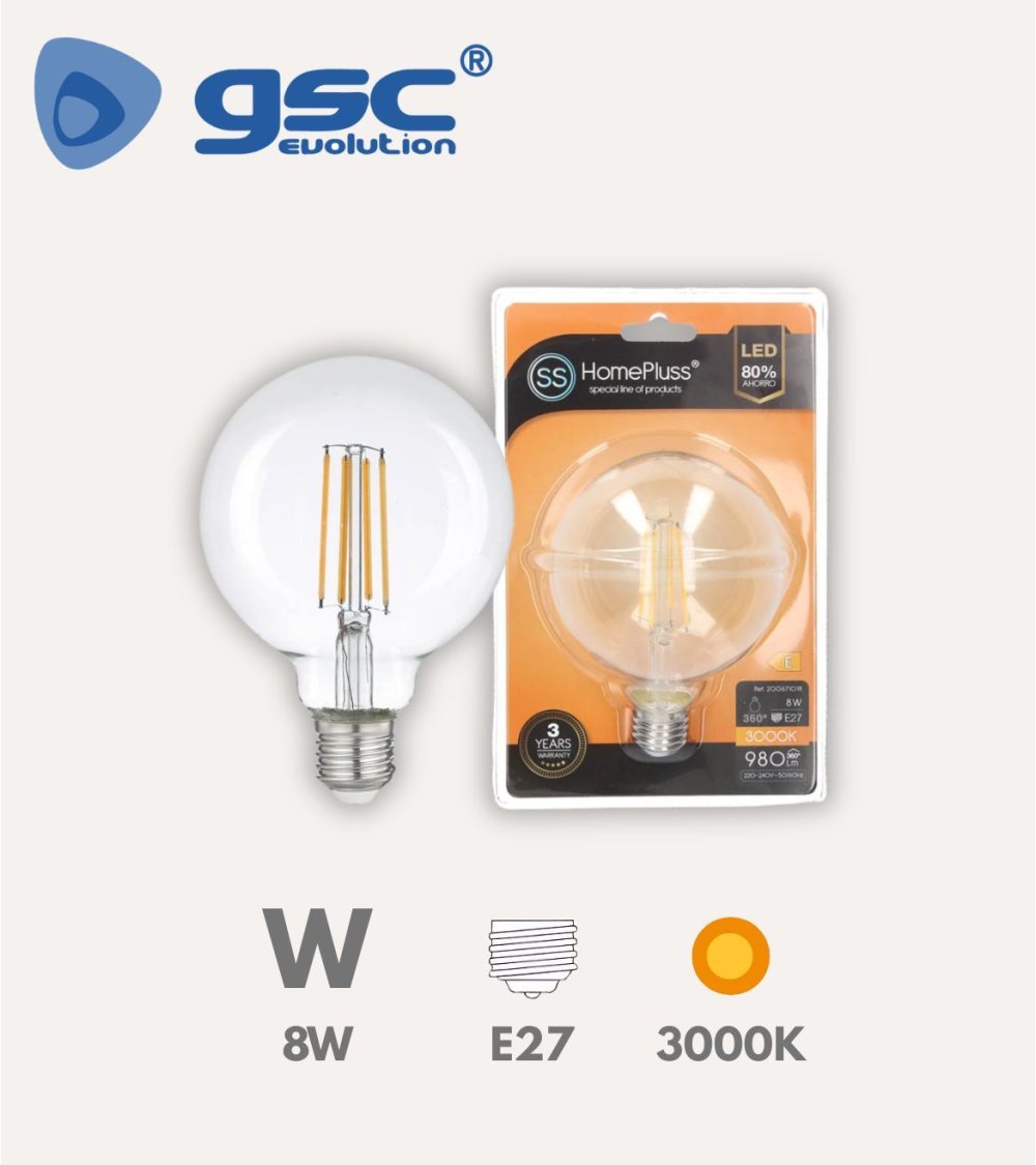 La Bombilla LED Globo G95 E27 8W es una solución de iluminación que combina eficiencia energética con un diseño elegante y funcional. Esta bombilla es ideal para quienes buscan una luz de calidad que aporte calidez y estilo a cualquier espacio del hogar.