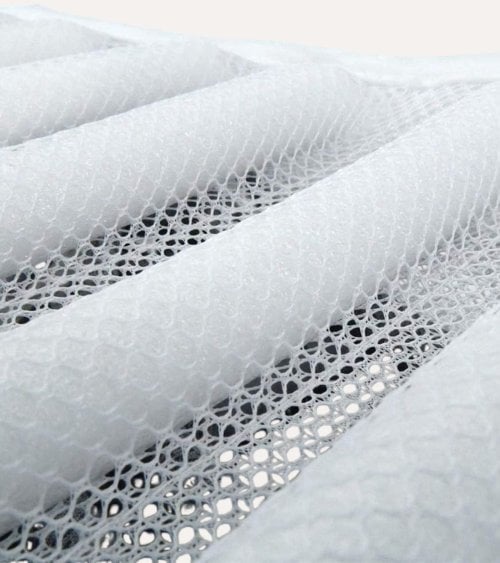 - Material de malla de plástico resistente y transpirable, pensado para lavados frecuentes.
