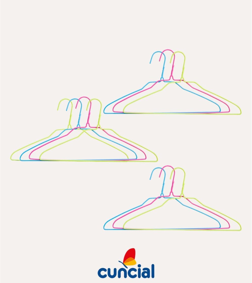 Organiza tu armario con estilo y funcionalidad gracias al Set de 10 perchas neón de alambre de Cuncial, disponible en ALI Hogar dentro de la categoría Limpieza y Planchado. Estas perchas metálicas destacan por su diseño moderno y ultrafino, ideal para aprovechar al máximo el espacio en barras y rieles, evitando el desorden y manteniendo tus prendas siempre a la vista.