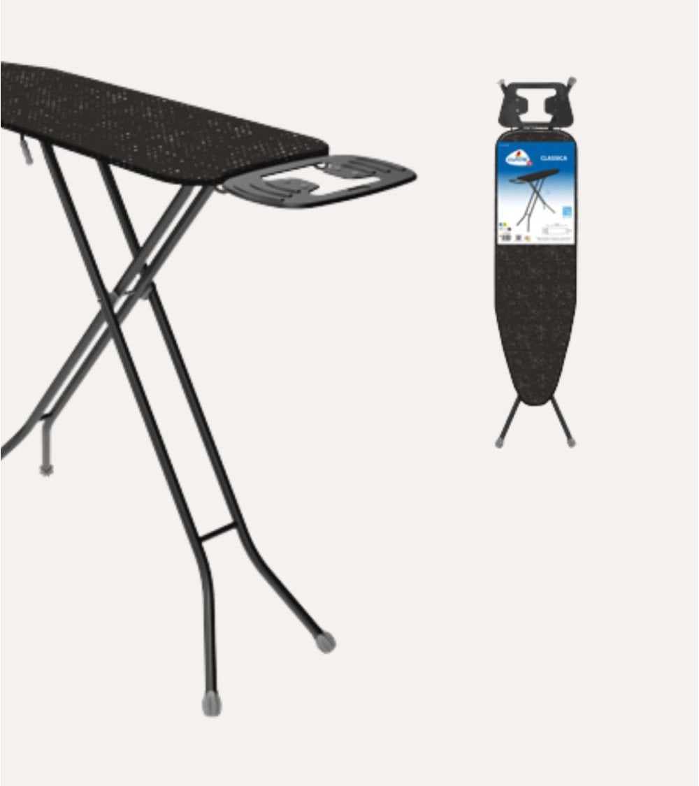 Su diseño clásico está pensado para combinar funcionalidad y comodidad. La superficie alargada permite planchar con facilidad camisas, pantalones, vestidos y ropa de hogar, mientras que las patas antideslizantes garantizan una base firme, evitando movimientos indeseados sobre todo tipo de suelos. Esta tabla es plegable, por lo que resulta muy fácil de guardar en armarios, lavaderos o detrás de puertas, optimizando el espacio disponible.