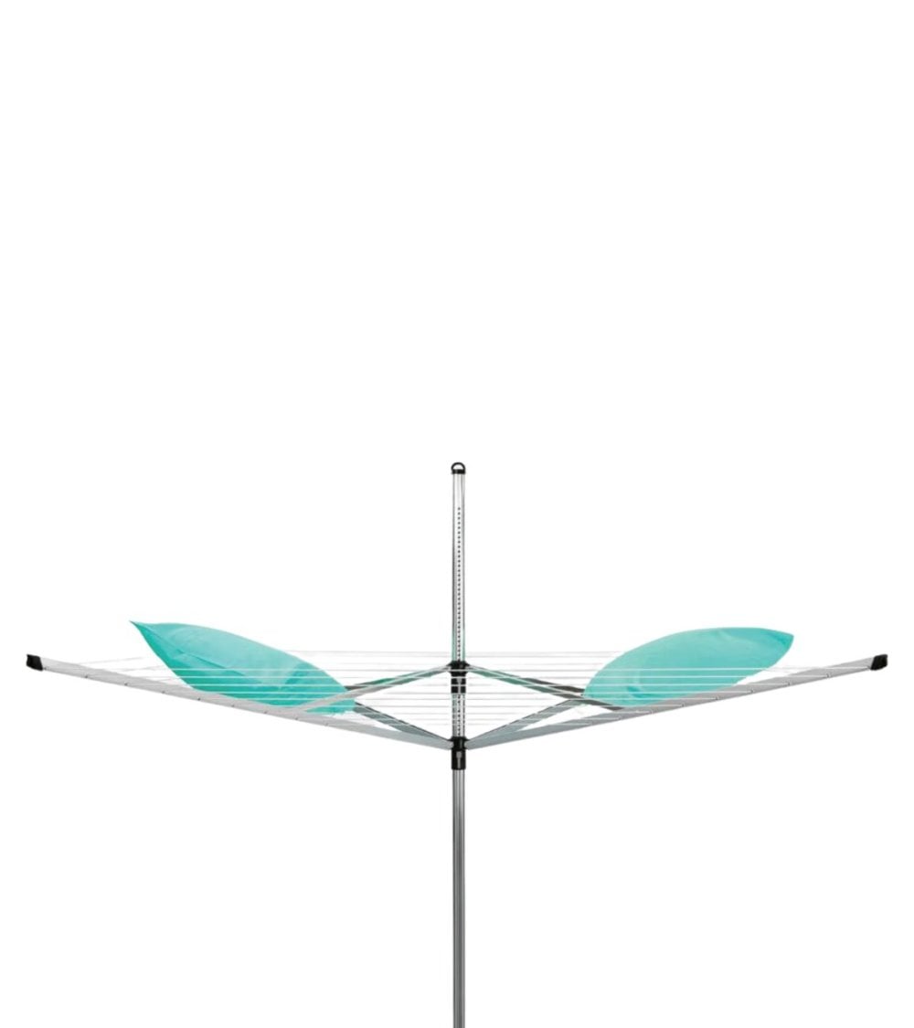 - El Tendedero Paraguas Rotary Lift-O-Mat de 4 Brazos cuenta con un diseño de paraguas que maximiza el espacio de secado.