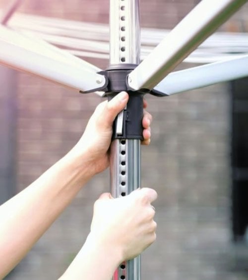 - Este tendedero tiene un mecanismo de elevación que facilita su uso y almacenamiento.