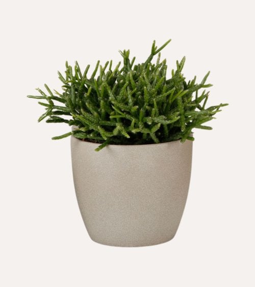 La Maceta Stone de Cerámica está elaborada con cerámica resistente que garantiza durabilidad y un acabado sofisticado. Su forma redondeada y ligeramente cónica aporta un toque contemporáneo, mientras que su color neutro en tonos beige o topo se adapta fácilmente a diferentes estilos decorativos, desde minimalistas hasta naturales.