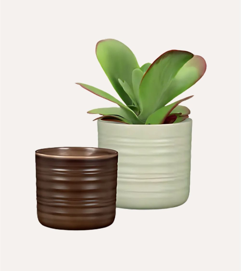 Esta maceta está confeccionada en cerámica de alta calidad, lo que garantiza durabilidad y resistencia, perfecta tanto para interiores como para exteriores. Su acabado mate le confiere una textura suave al tacto y un aspecto contemporáneo que se adapta fácilmente a diferentes estilos decorativos, desde el minimalismo hasta ambientes rústicos o cottage.