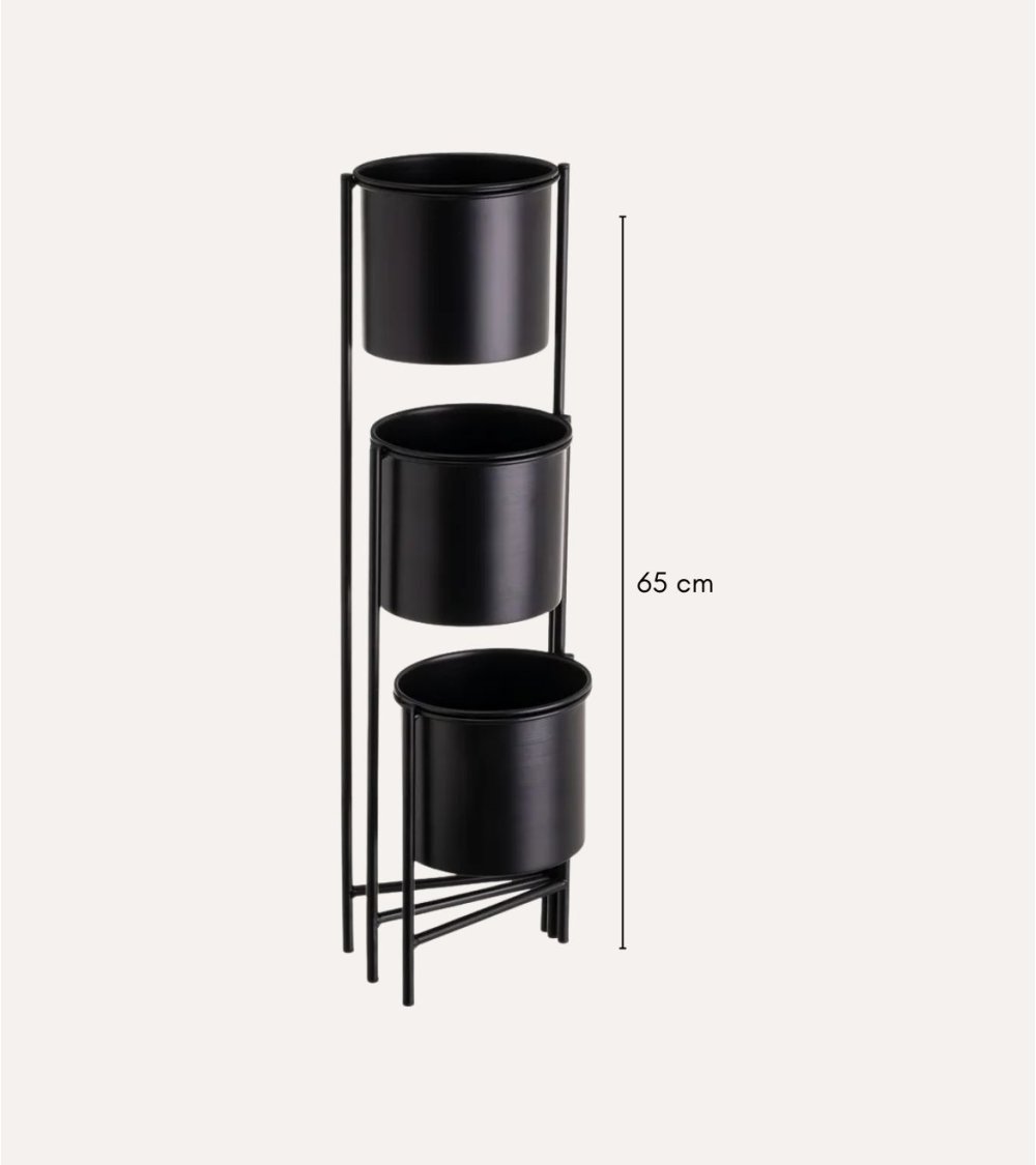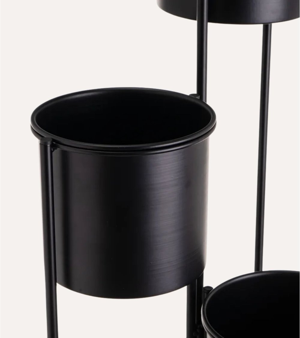 Disponible en dos colores versátiles, blanco y negro, este portamaceta se adapta perfectamente a diferentes estilos decorativos, desde ambientes minimalistas hasta espacios más clásicos. Su estructura metálica garantiza resistencia y estabilidad, mientras que su diseño en tres niveles permite optimizar el espacio y crear una presentación visual atractiva.
