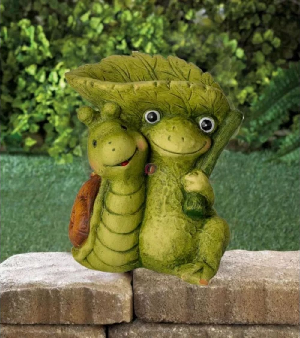 Figura de jardín surtida con un ideal comedero para pájaros con forma de hoja. Perfecto para poner en tu jardín y disfrutar de como los animales comen sobre el plácidamente.