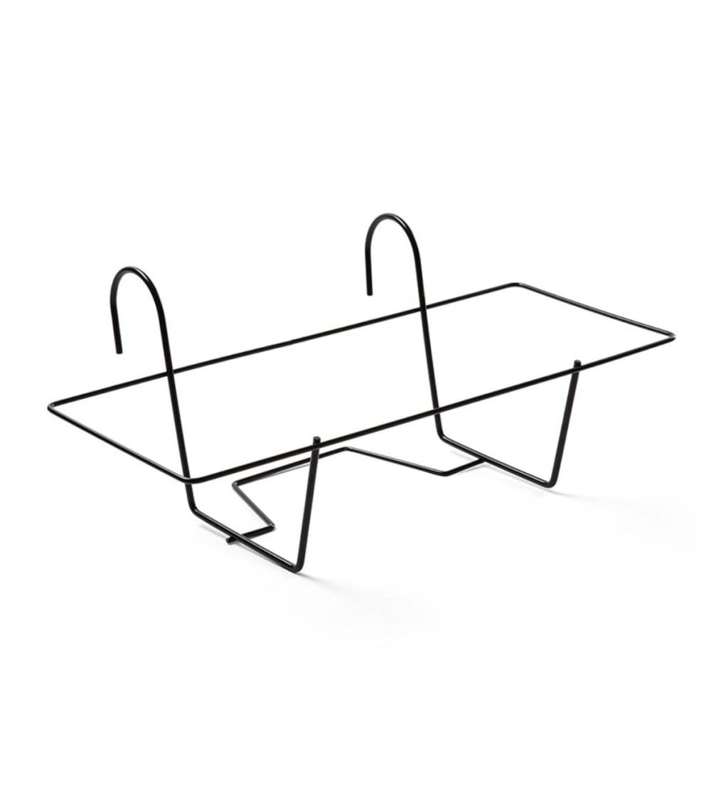 Jardinera balconera ideal para balcones, fabricada en plástico con acabado mate. Incluye soporte metálico de color negro.