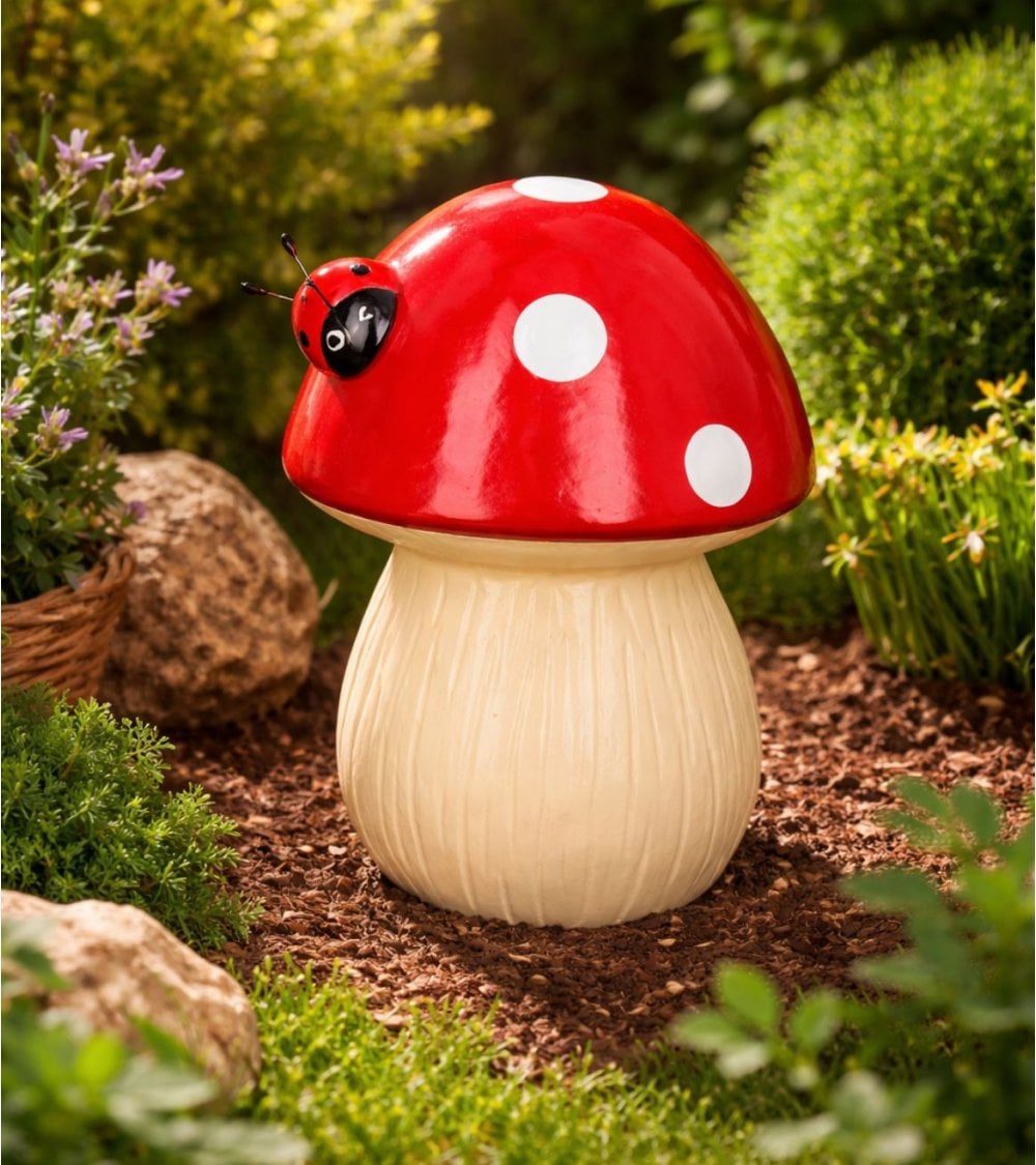 Gracias a su diseño compacto, la Figura Decorativa Seta Klein con Mariquita de Terracota se integra fácilmente en composiciones con macetas, jardineras, piedras decorativas o luces solares. Es perfecta para crear pequeños escenarios temáticos, rincones de fantasía para niños o caminos decorativos en el jardín. Su acabado en cerámica facilita la limpieza y el mantenimiento, haciendo de esta pieza una opción práctica y duradera para el uso decorativo diario.