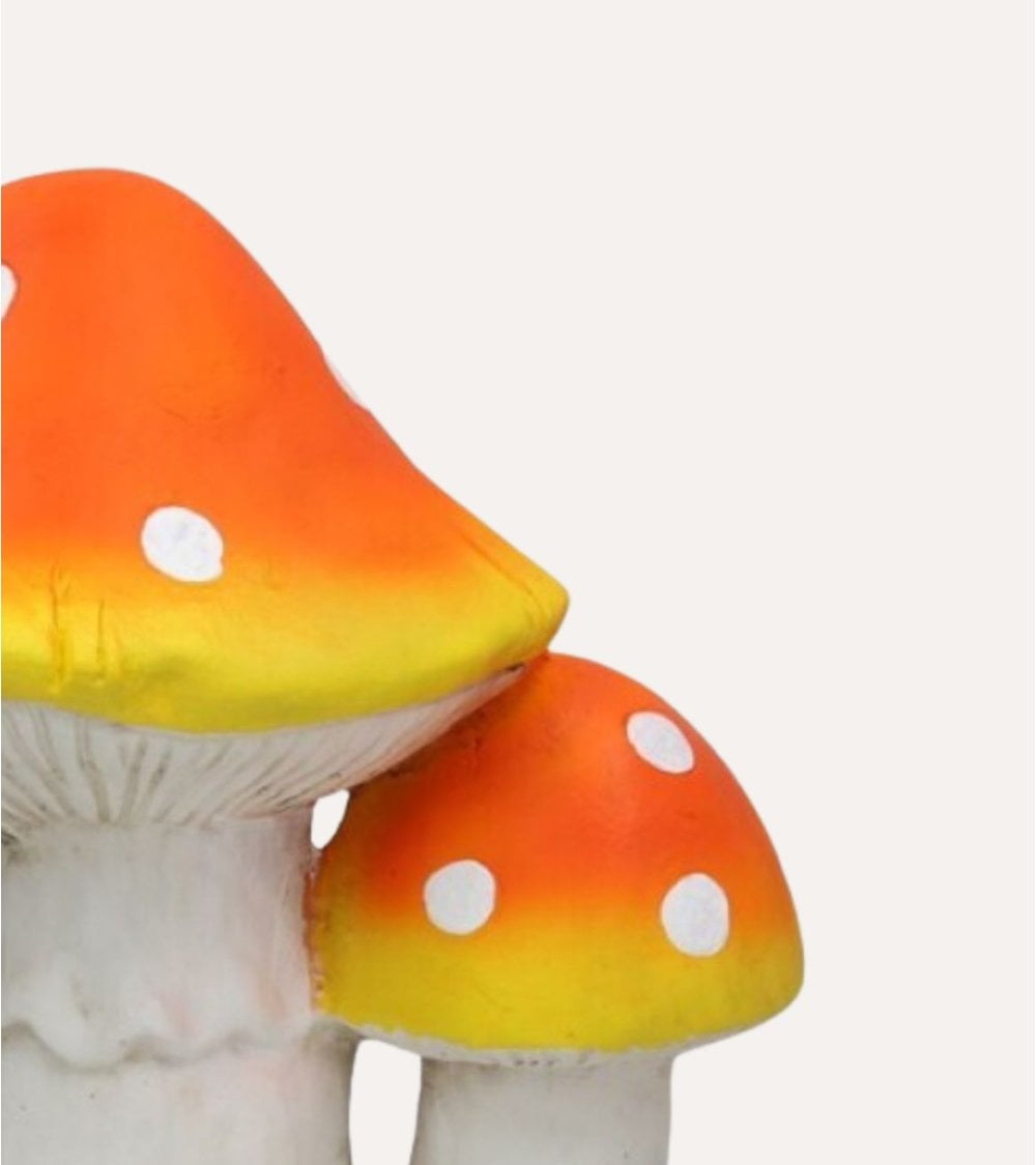 La Figura Decorativa Setas Kalu de Magnesio es una pieza ideal para dar un toque mágico y lleno de encanto a tus espacios exteriores e interiores. Fabricada en magnesia, un material muy apreciado por su durabilidad y ligereza, esta figura soporta de forma óptima el uso decorativo continuo. Sus setas, de diferentes alturas, recrean una composición visual dinámica, ideal para acompañar macetas, caminos de jardín o pequeñas zonas verdes. El diseño de los sombreros incluye tonos cálidos y detalles de puntos claros que evocan los clásicos hongos de cuento, aportando color y personalidad a cualquier ambiente.