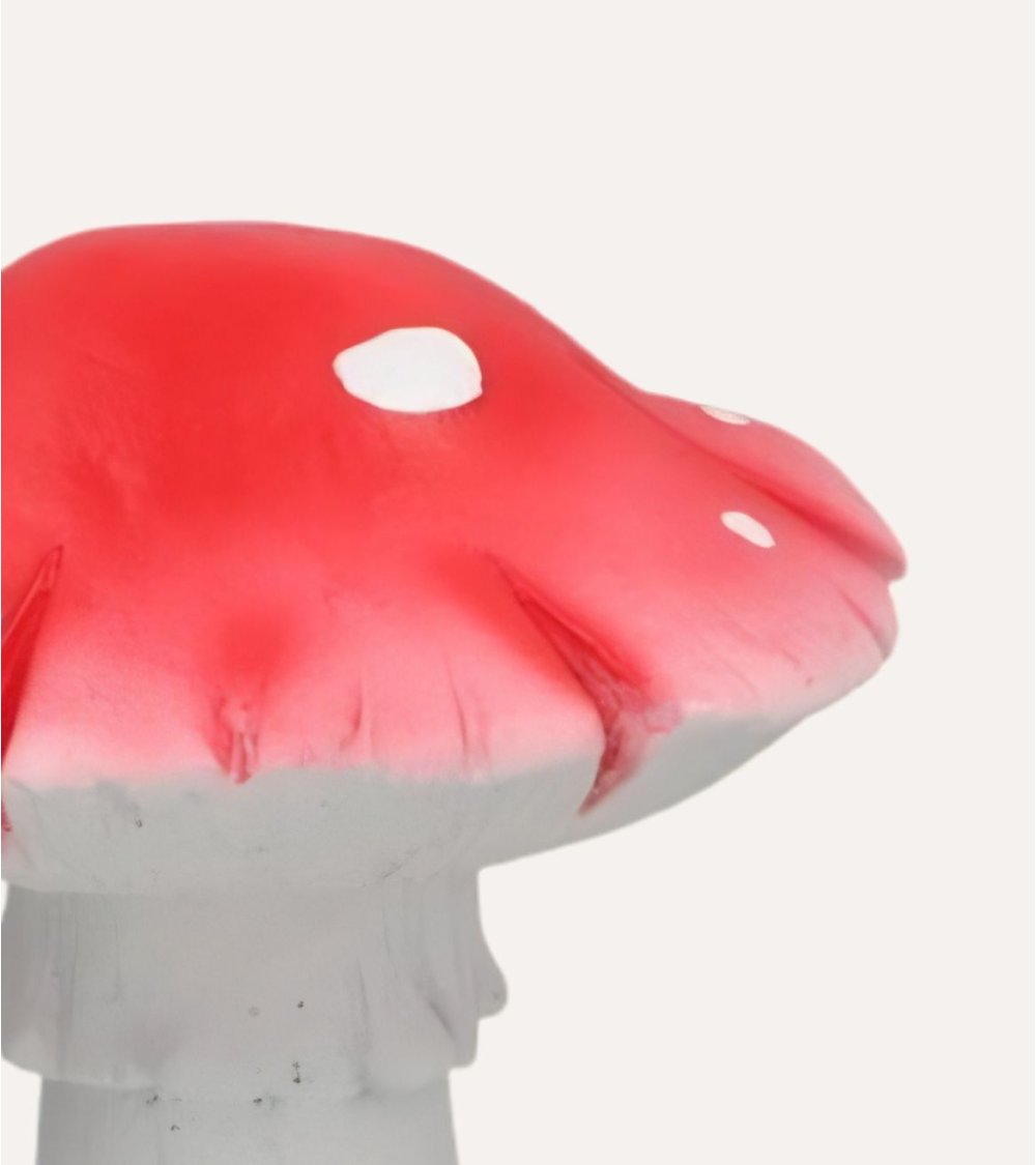 - Estilo: diseño inspirado en seta de bosque, con sombrero rojo y detalles en blanco de aspecto encantador.
