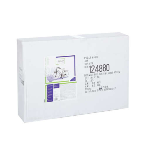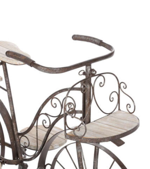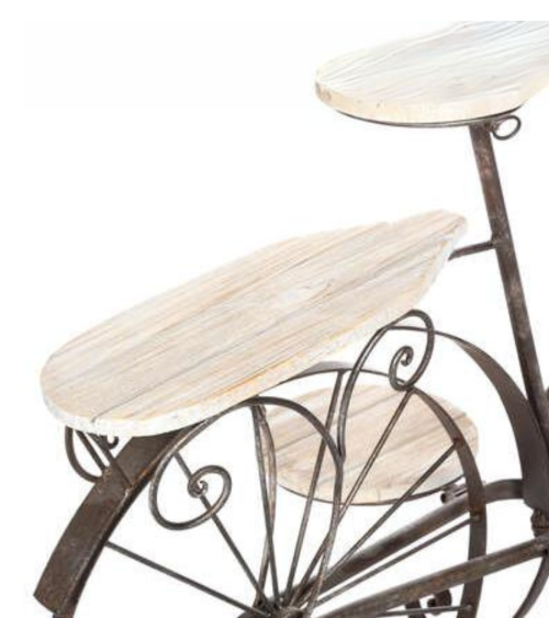 Portamacetas estilo bicicleta de 59 cm es un accesorio decorativo único. Ideal para dar un toque vintage a tu hogar o jardín. Su diseño en forma de bicicleta aporta un encanto especial, mientras que su tamaño de 59 cm permite colocar diversas plantas. Este portamacetas es resistente y duradero, perfecto para los amantes de la decoración y la jardinería.