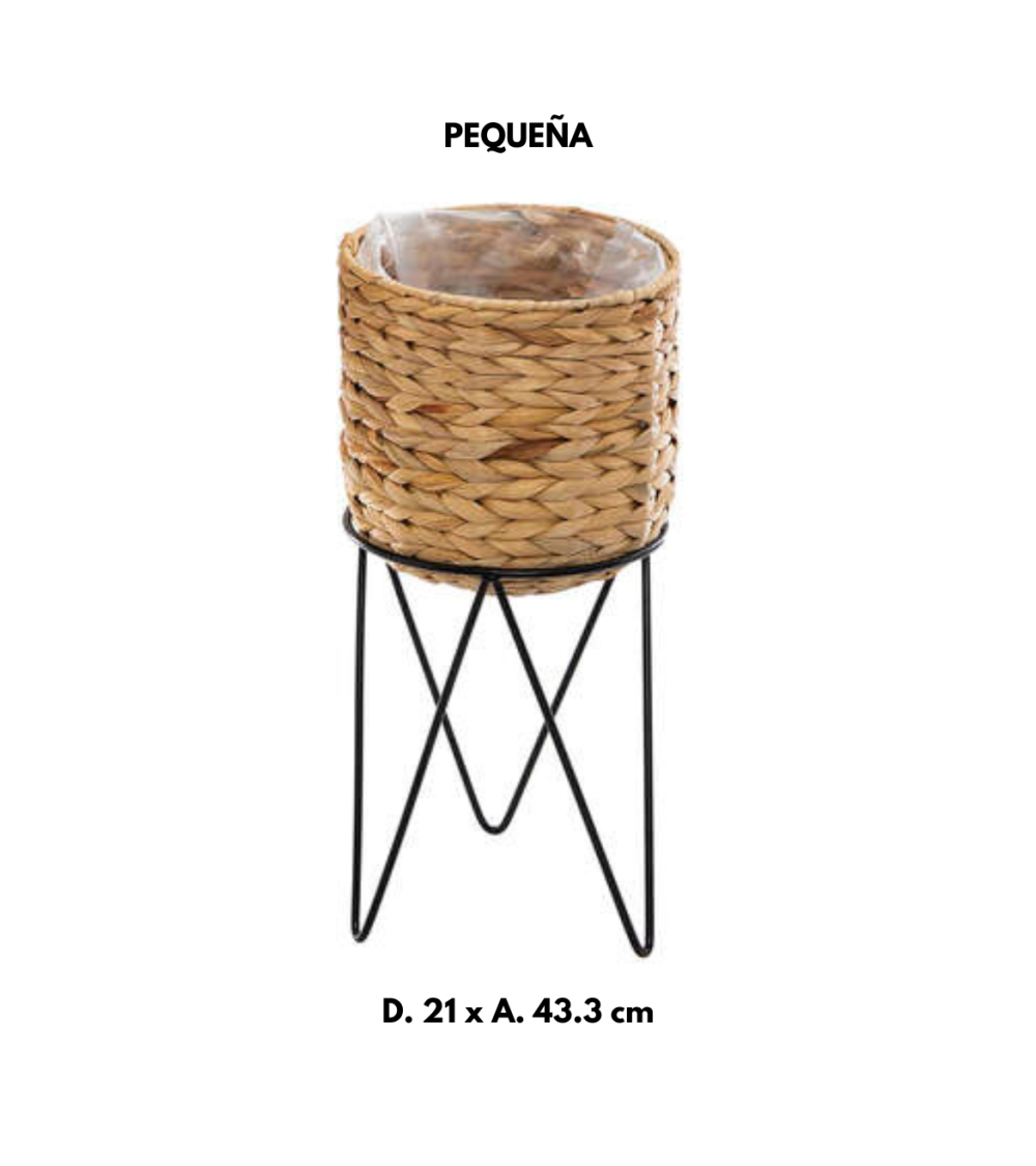 Esta maceta de fibra de jacinto es un accesorio imprescindible para los amantes de las plantas. Con su diseño elegante y pies de metal robustos, esta maceta no solo es funcional, sino también una pieza decorativa. La fibra de jacinto le da un toque natural y rústico, perfecto para cualquier espacio. Ideal para realzar la belleza de tus plantas y flores favoritas.