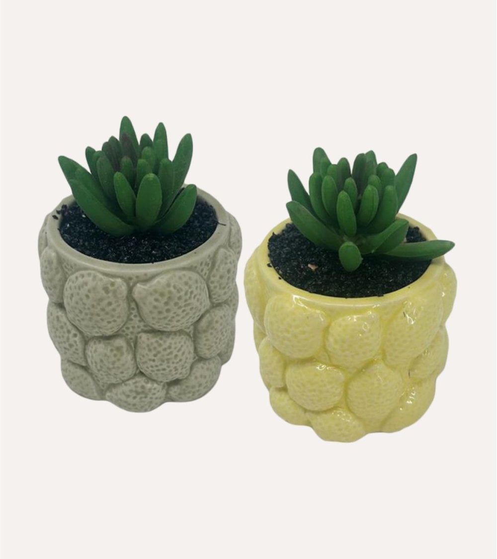Esta encantadora Planta Decorativa con Maceta de Limones es un complemento perfecto para cualquier espacio. Con medidas de 8.5 x 8.5 x 10.5 cm, es el tamaño ideal para colocar en cualquier rincón. Disponible con maceta en colores gris y amarillo, presenta un atractivo relieve de limones que añade un toque fresco y vibrante.