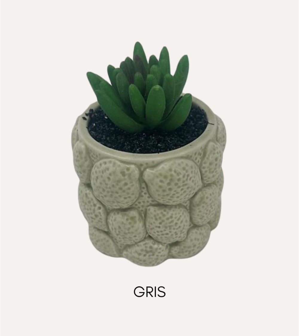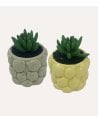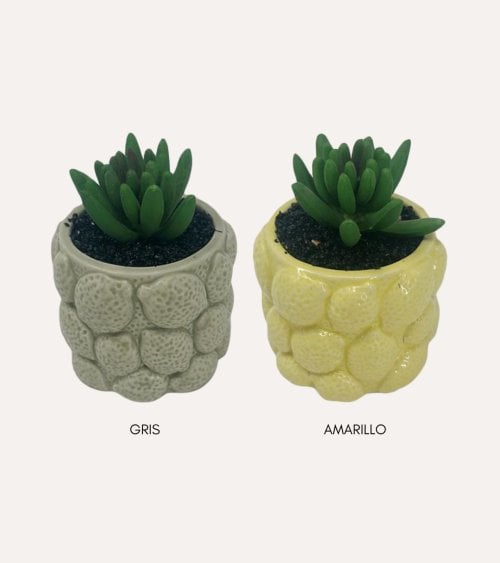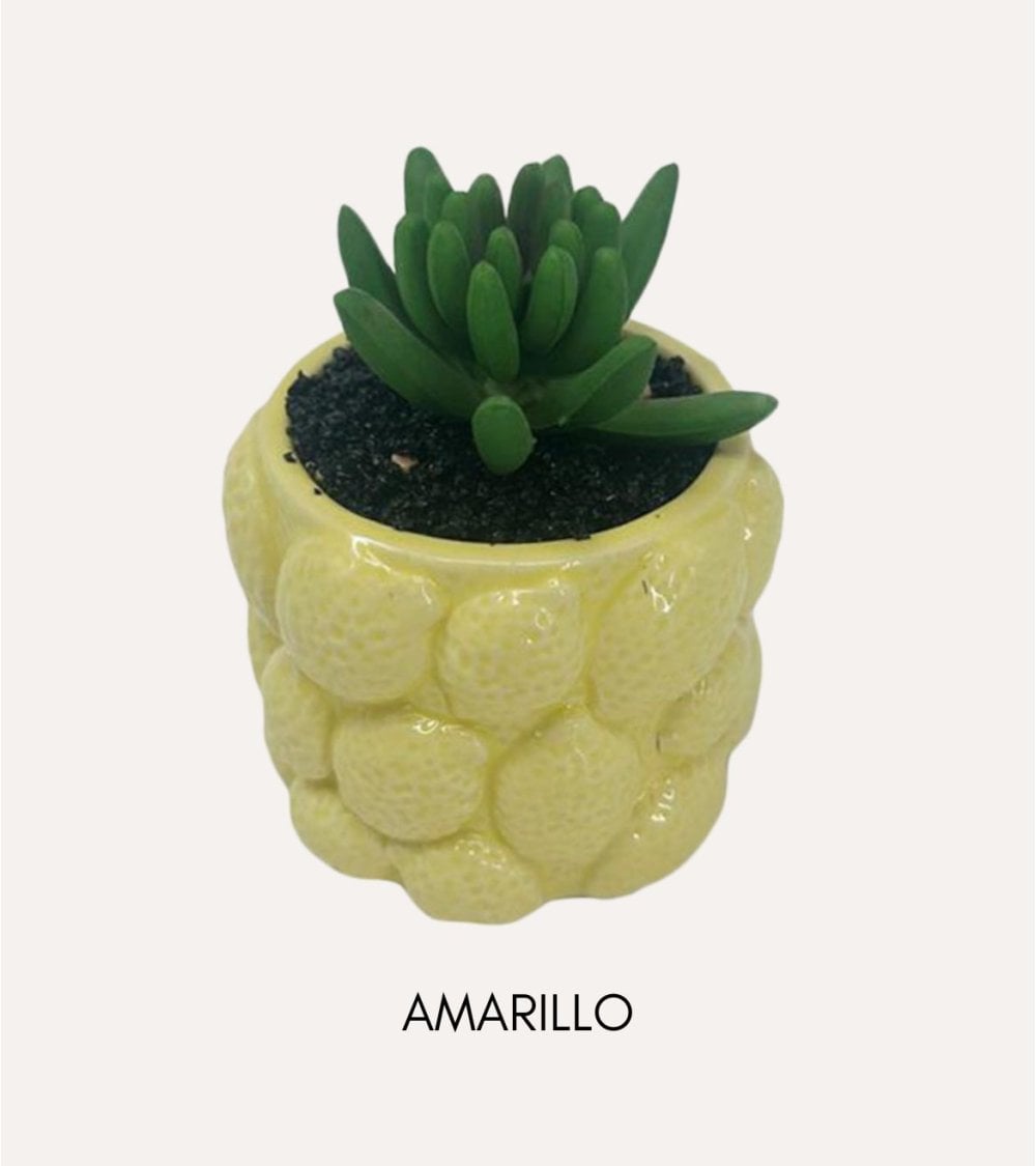 - Disponible con maceta en gris y amarillo.
