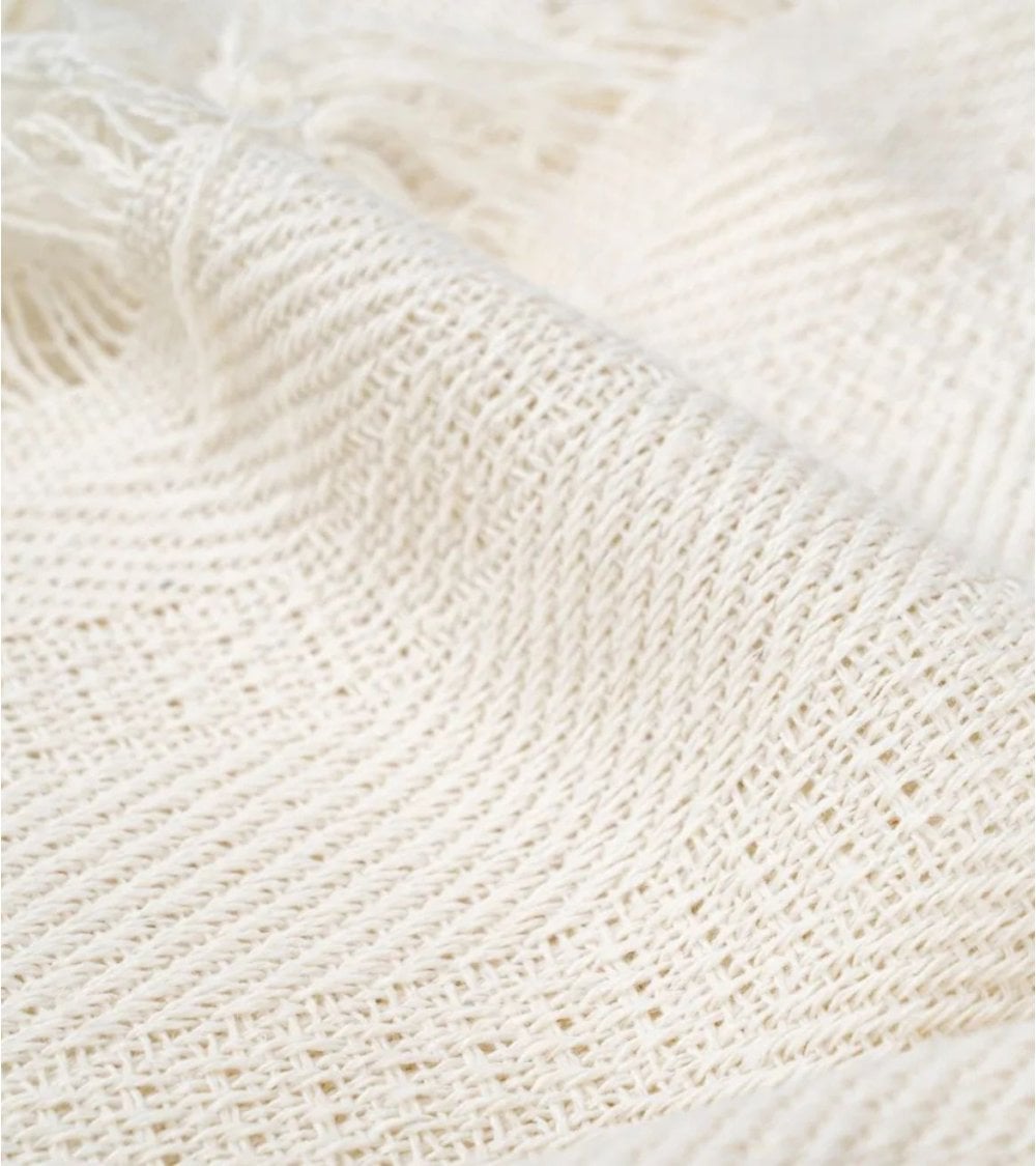 La Manta de Tejido Fino de Algodón Reciclado de Ixia, disponible en ALI Hogar, combina sostenibilidad y estilo. Confeccionada con algodón reciclado y poliéster, ofrece una textura suave y duradera. Su tejido fino es agradable al tacto, ideal para el sofá, la cama o actividades al aire libre. Disponible en tres tamaños y colores neutros como Beige, Crudo y Blanco, se adapta a cualquier decoración. Su diseño sutil con patrón texturizado y bordes con flecos aporta un toque elegante y acogedor.