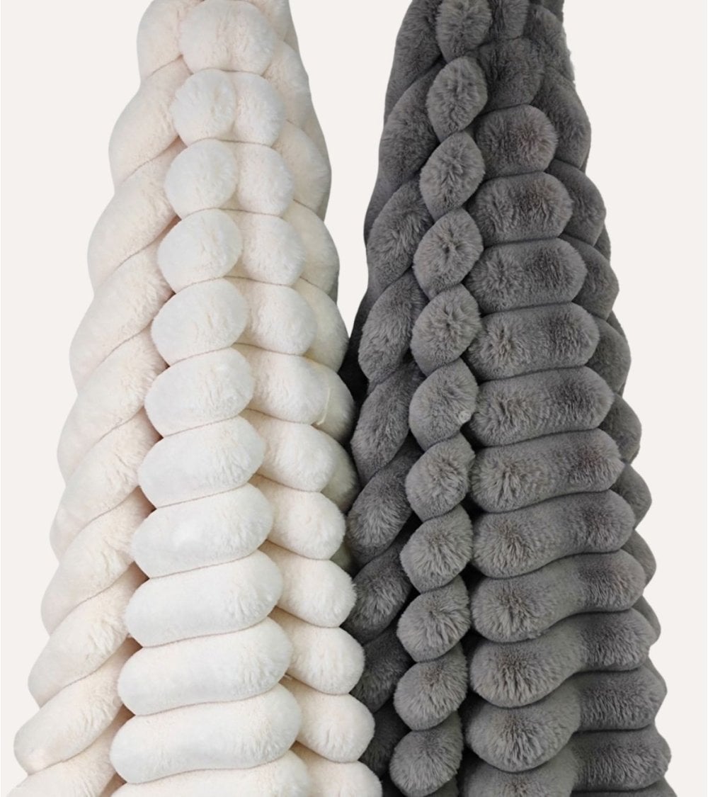 Confeccionada en 100% poliéster, esta manta ofrece una textura suave y agradable al tacto, gracias a su acabado tipo sherpa de pelo corto que garantiza una sensación acogedora durante todo el año. Su diseño versátil permite integrarla fácilmente tanto en salones modernos como en dormitorios clásicos, convirtiéndola en un complemento decorativo funcional.