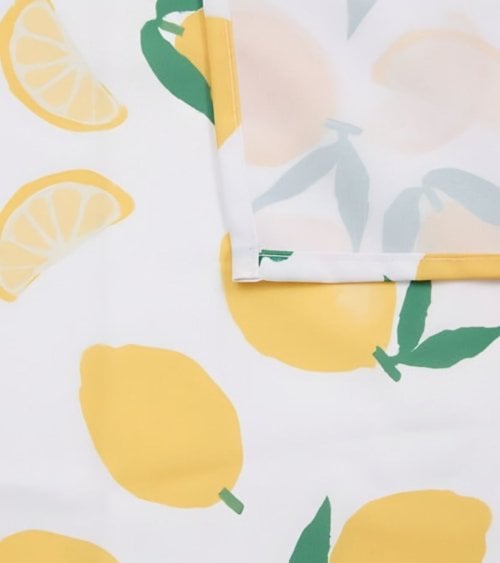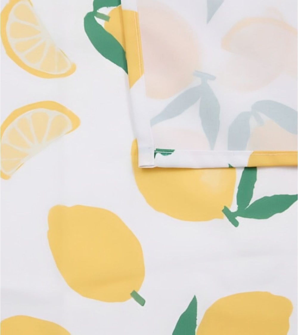- Diseño: Estampado alegre con limones amarillos suaves y hojas verdes sobre fondo blanco.