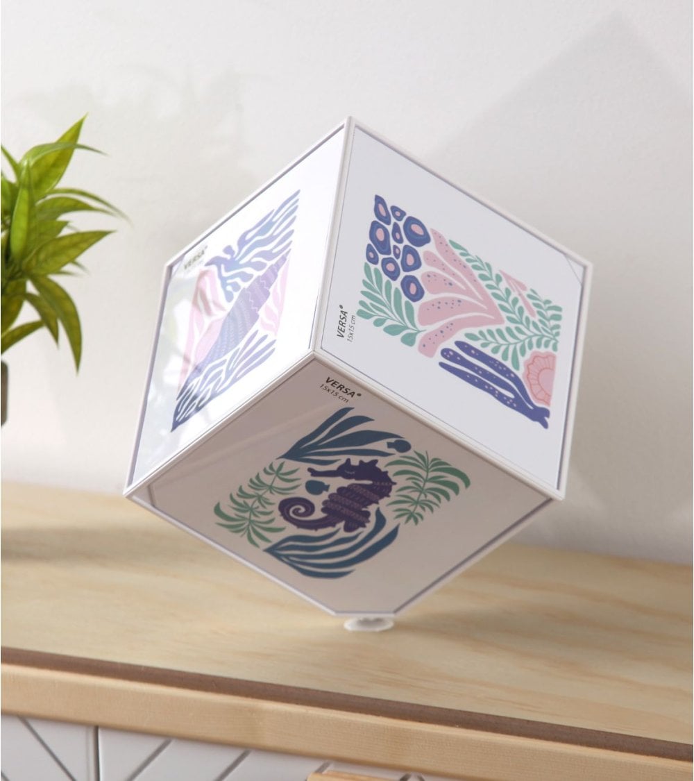 El cubo marco de fotos giratorio Juno para 6 fotos de Versa, disponible en la tienda online ALI Hogar, es la pieza perfecta para dar un toque moderno y personal a cualquier estancia. Diseñado como un elegante marco de fotos en forma de cubo, permite exhibir hasta seis recuerdos favoritos en un solo objeto decorativo, ideal para el salón, dormitorio, despacho o incluso para regalar en ocasiones especiales.