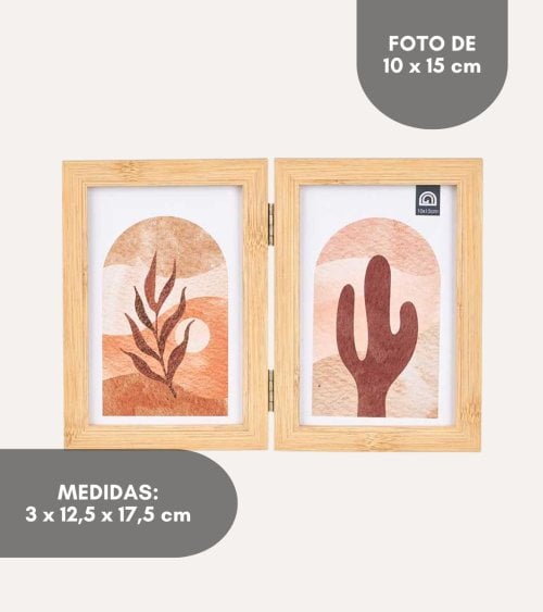 - Disponible en dos tamaños: Pequeño (2 fotos de 10 x 15 cm): 25 x 3 x 18 cm. Grande (3 fotos de 10 x 10 cm): 38 x 3 x 12 cm.