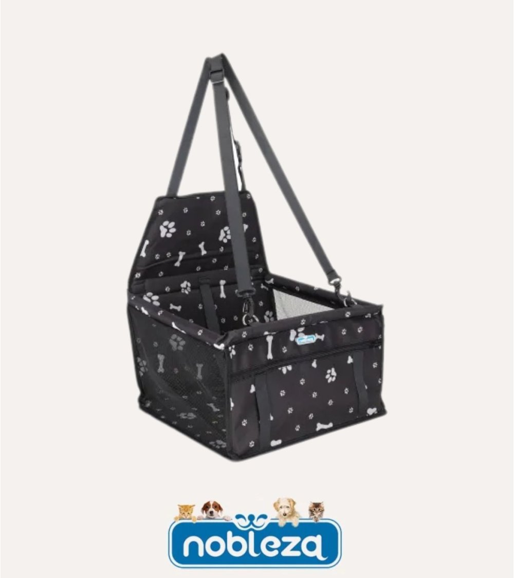 - Sistema de Seguridad: Equipado con correas ajustables que se fijan al cinturón de seguridad del vehículo, además de un enganche para arnés o correa que mantiene a tu mascota segura en su lugar.