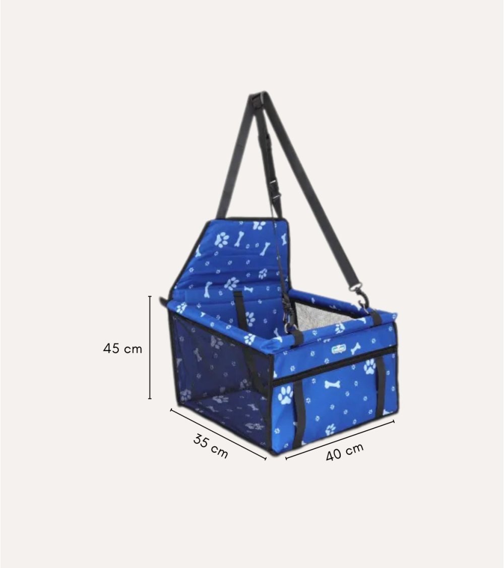 - Sistema de Seguridad: Equipado con correas ajustables que se fijan al cinturón de seguridad del vehículo, además de un enganche para arnés o correa que mantiene a tu mascota segura en su lugar.