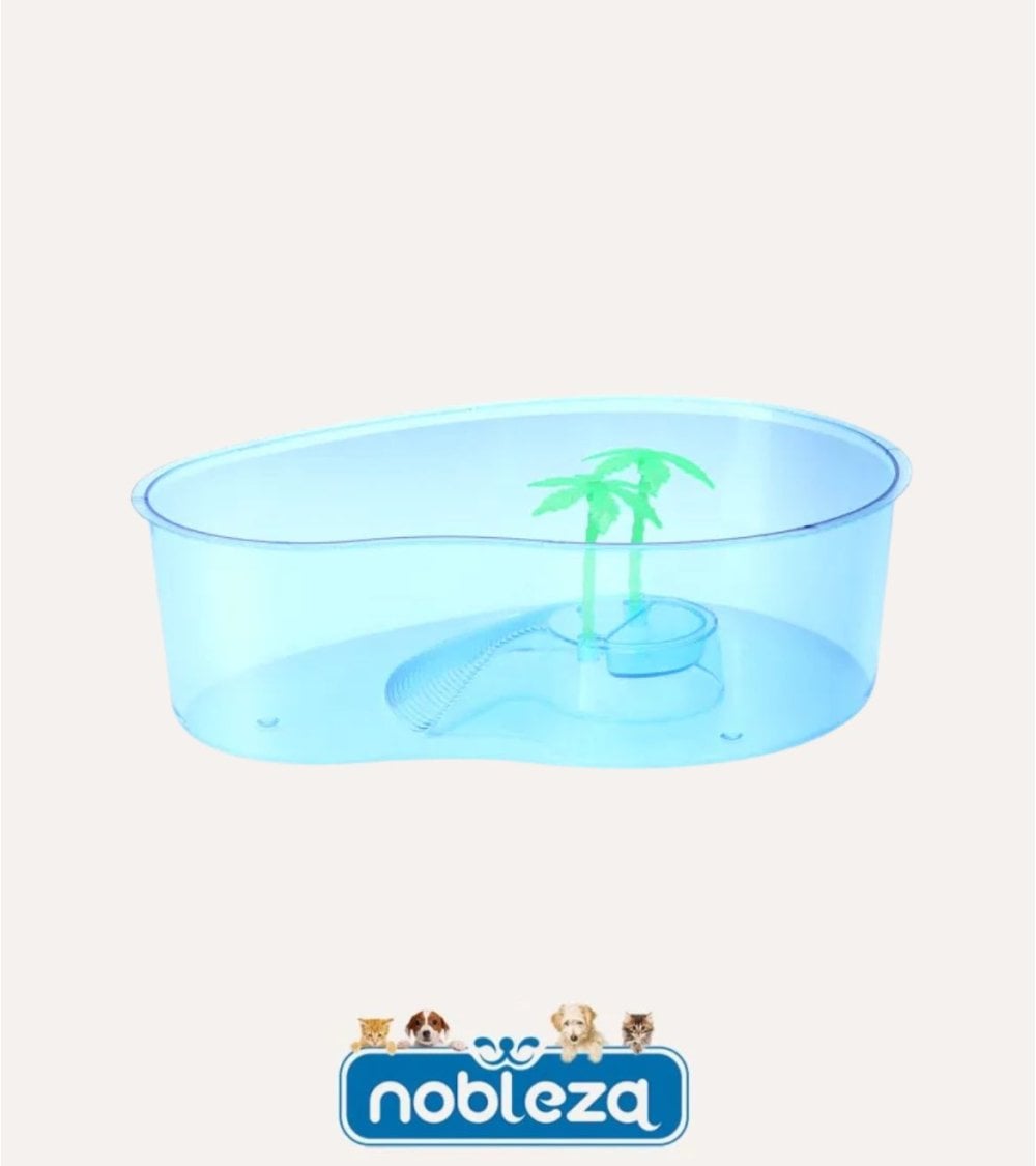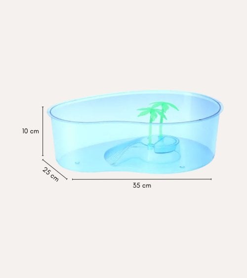 Con su forma ovalada y dimensiones generosas de 25 x 10 x 35 cm, este acuario ofrece suficiente espacio para que tus tortugas naden y se asoleen cómodamente. Su construcción en plástico transparente permite una visibilidad óptima, facilitando el monitoreo de las actividades de tus mascotas.