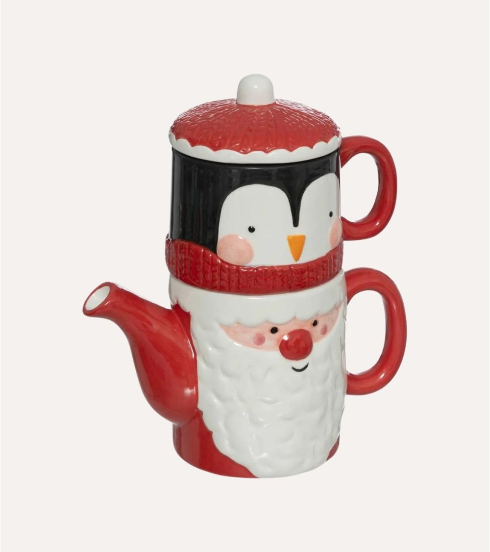 Set de Tetera y Taza Navideña Apilables de Dolomita