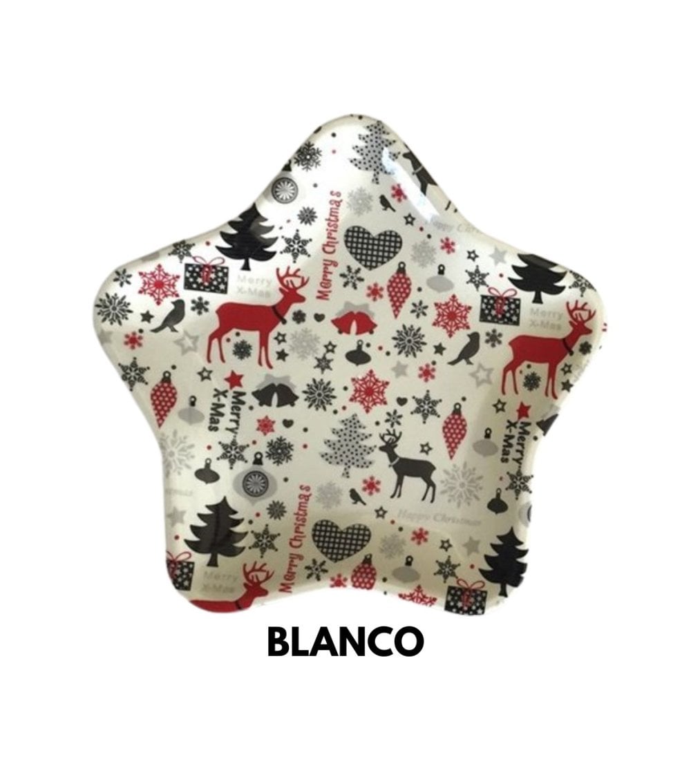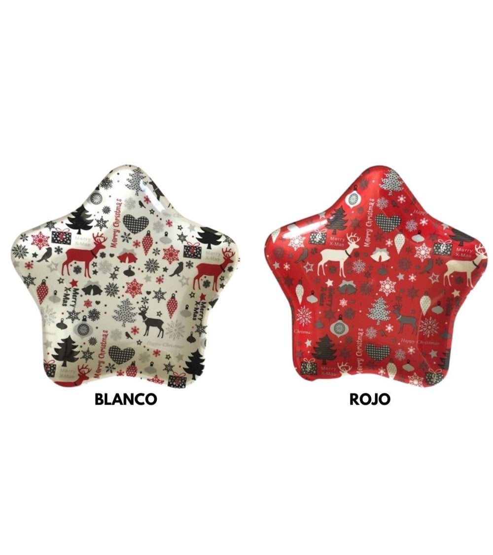 Esta bandeja navideña en forma de estrella es el complemento perfecto para tu decoración festiva. Con medidas de 36 x 36 cm, es lo suficientemente grande para servir aperitivos o postres. Disponible en blanco y rojo, esta bandeja aportará un toque de alegría y color a tus celebraciones navideñas.