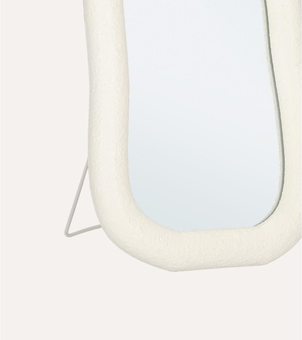 Este espejo destaca por su forma orgánica y redondeada, con bordes suaves que evocan la naturaleza, aportando un toque cálido y acogedor a tu ambiente. Su marco está elaborado en MDF con una textura suave y agradable al tacto, en un tono crema muy sutil que se integra fácilmente en diferentes estilos decorativos como el contemporáneo, escandinavo o bohemio.