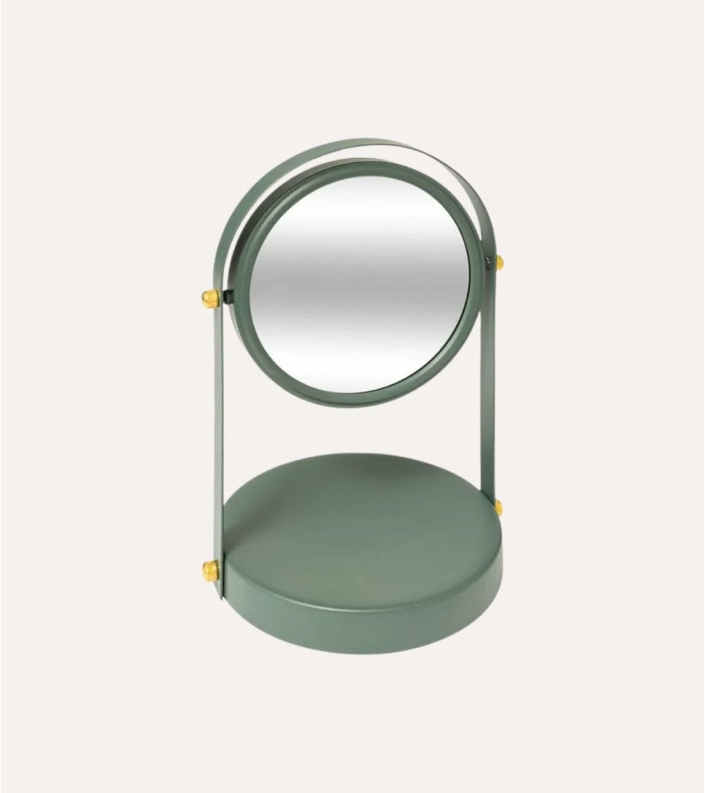 Su estructura metálica ofrece una base estable y resistente, mientras que su diseño giratorio permite ajustar la posición del espejo con total comodidad, adaptándolo a la altura y el ángulo de visión que necesites en cada momento. Disponible en los elegantes tonos Color: Verde y Color: Beige, este modelo encaja a la perfección en ambientes nórdicos, contemporáneos o de inspiración natural. Tanto si buscas un espejo decorativo para tu dormitorio como un práctico complemento para tu baño, el Espejo de Mesa Duo Giratorio de Metal aportará estilo y funcionalidad a tu espacio.