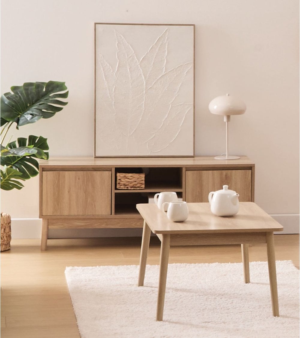 La Mesa de Centro Abana es perfecta para colocar tazas, libros o elementos decorativos, convirtiéndose en el centro neurálgico del salón. Su estructura robusta garantiza estabilidad mientras mantiene un aspecto ligero gracias a sus líneas simples y elegantes.