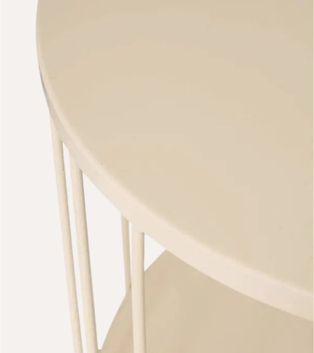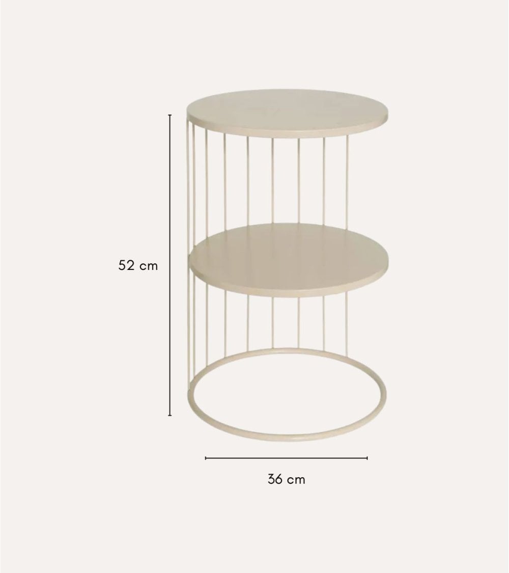 La Mesa Auxiliar Kobu, fabricada con materiales de alta calidad, ofrece dos niveles de amplias superficies para colocar diversos objetos. Su diseño abierto y ligero, sustentado por varillas metálicas verticales, permite que la luz fluya, creando un ambiente amplio y acogedor. Su acabado en tonos neutros facilita su integración en diversos estilos decorativos. Perfecta para colocar junto a sofás o camas, su base circular garantiza estabilidad y sus dos niveles permiten una organización práctica. Hecha de acero resistente, asegura durabilidad y robustez. Sus dimensiones son 36 x 36 x 52 cm.