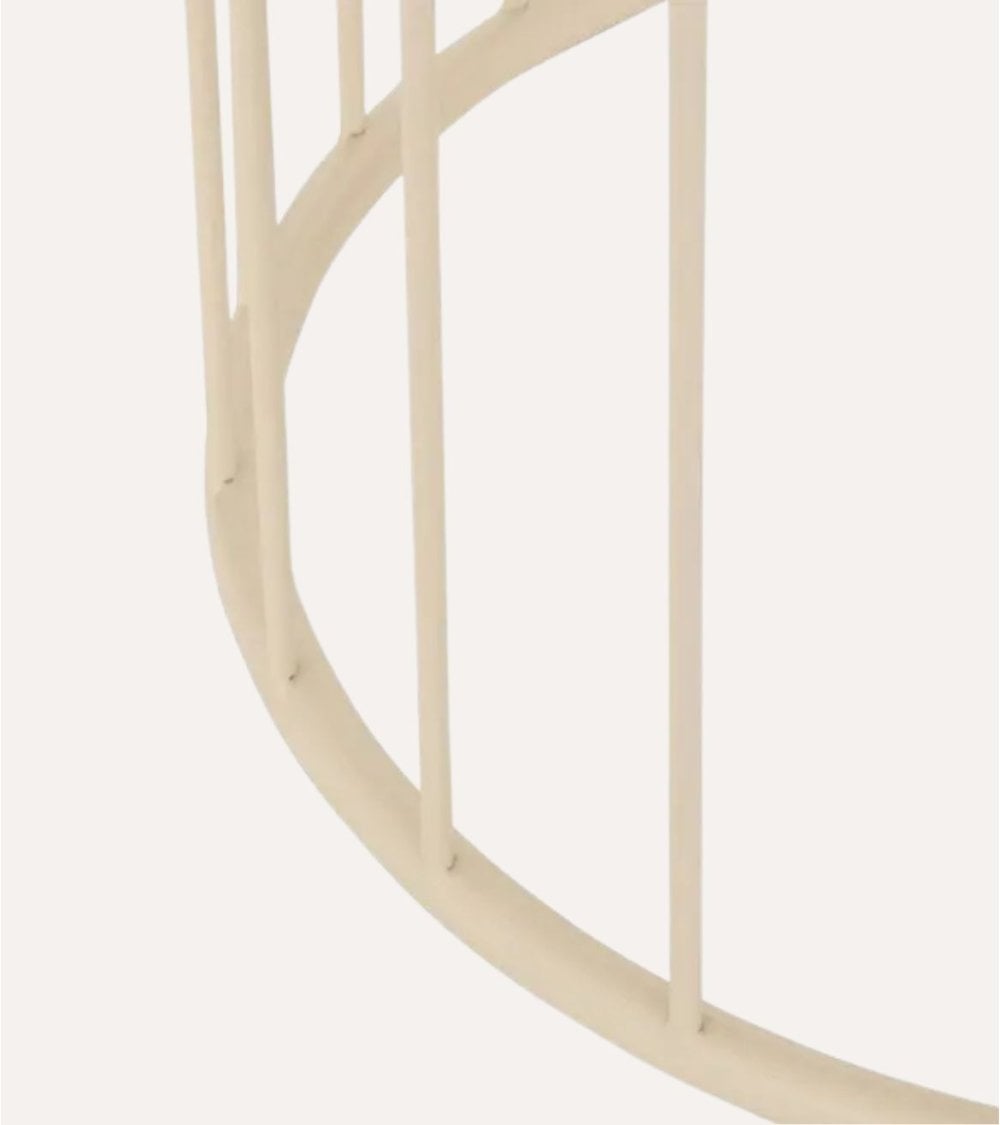 El acabado en tonos neutros como el crema o beige suave facilita su integración en diversos estilos decorativos, desde el contemporáneo hasta el escandinavo o industrial. Además, sus superficies lisas y ligeramente brillantes contrastan armoniosamente con las líneas metálicas del marco, creando un equilibrio perfecto entre textura y forma.