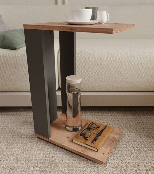La mesa auxiliar moderna con ruedas es un diseño en madera y metal, ideal para colocar al lado del sofá o la cama. Cuenta con una balda inferior que aumenta su capacidad de almacenamiento, perfecta para apoyar tu desayuno, una tacita de té o cualquier otro objeto. Sus medidas son 42.2 x 28.4 x 62 cm.