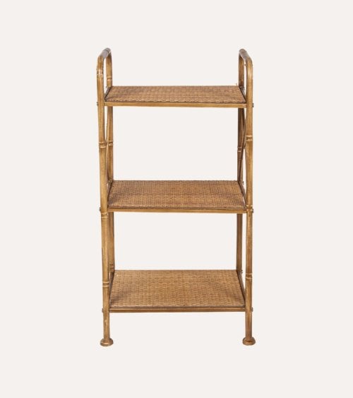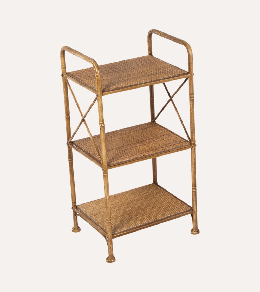 Esta mesa auxiliar de 3 niveles combina metal y paja trenzada para crear un efecto bambú único. Con medidas de 37 x 29 x 68 cm, es el complemento perfecto para cualquier espacio. Su diseño versátil y funcional permite su uso en diferentes ambientes, aportando un toque de estilo y elegancia. Ideal para colocar objetos decorativos, libros o plantas.