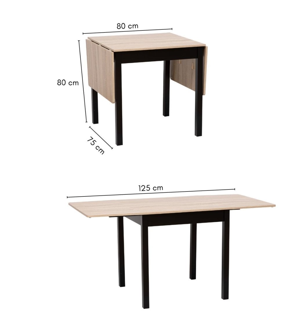 Mesa abatible para 2 o 6 comensales de 80 x 75 x 80 cm es la solución perfecta para espacios pequeños. Su diseño versátil permite acomodar a dos personas para una cena íntima o expandirse para albergar a seis para una reunión familiar. Fácil de montar y desmontar, esta mesa es ideal para cualquier ocasión. Su acabado elegante y duradero la convierte en una adición valiosa para cualquier hogar.