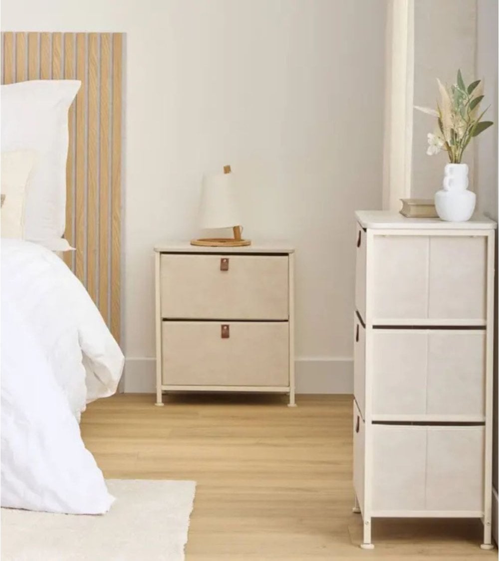 En ALI Hogar, te presentamos la Mesita de Noche Tissa con 2 Cajones de MDF y Acero, una pieza que combina funcionalidad y estilo moderno para complementar cualquier dormitorio o espacio interior. Esta mesita destaca por su diseño minimalista y materiales de alta calidad, pensados para ofrecer durabilidad y elegancia en un solo mueble.