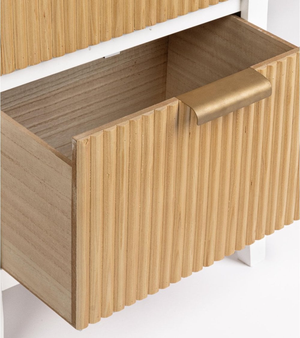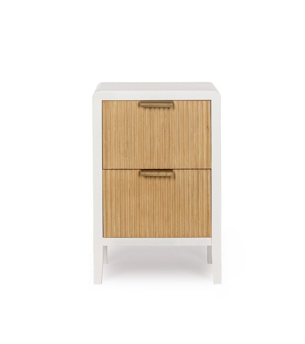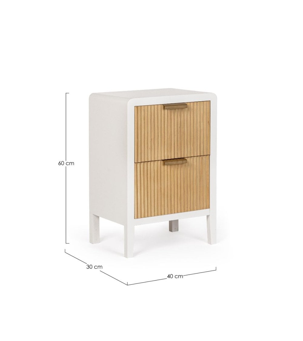Mesita de Noche de 2 Cajones de Madera en Color Blanco y Natural Charley