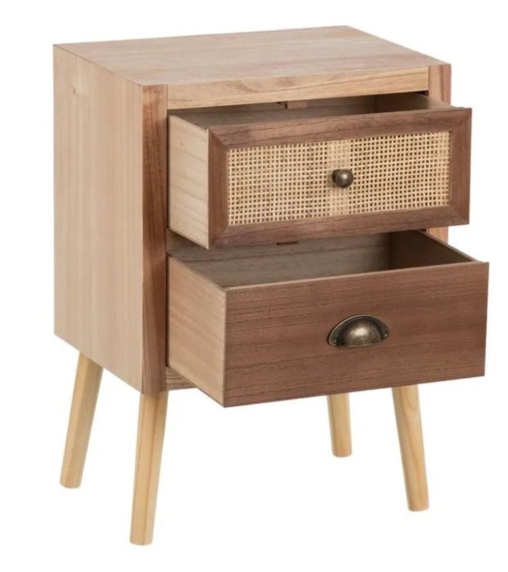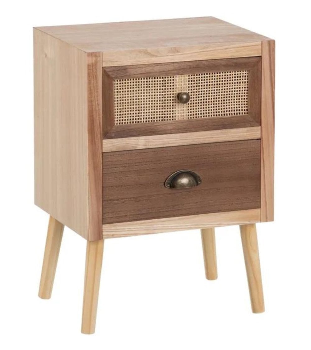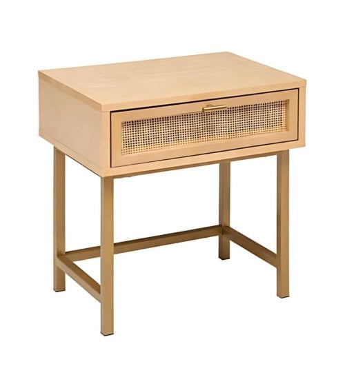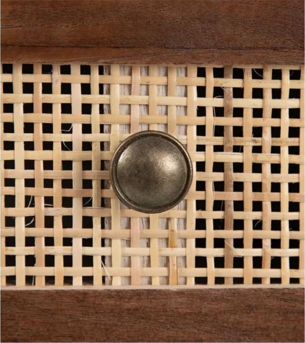 Mesita de Noche de Madera y Ratán Natural Sasha