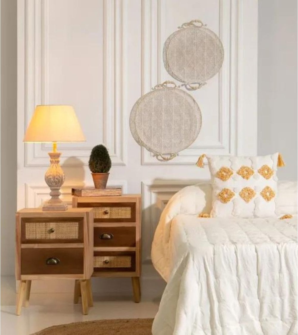 La Mesita de Noche de Madera y Ratán Natural Sasha es una pieza de mobiliario única que combina la elegancia de la madera con la frescura del ratán natural. Esta mesita de noche es perfecta para aquellos que buscan un toque de estilo y sofisticación en su dormitorio. Con su diseño contemporáneo y su acabado natural, la Mesita de Noche de Madera y Ratán Natural Sasha se adapta a cualquier tipo de decoración, desde la más moderna hasta la más clásica.