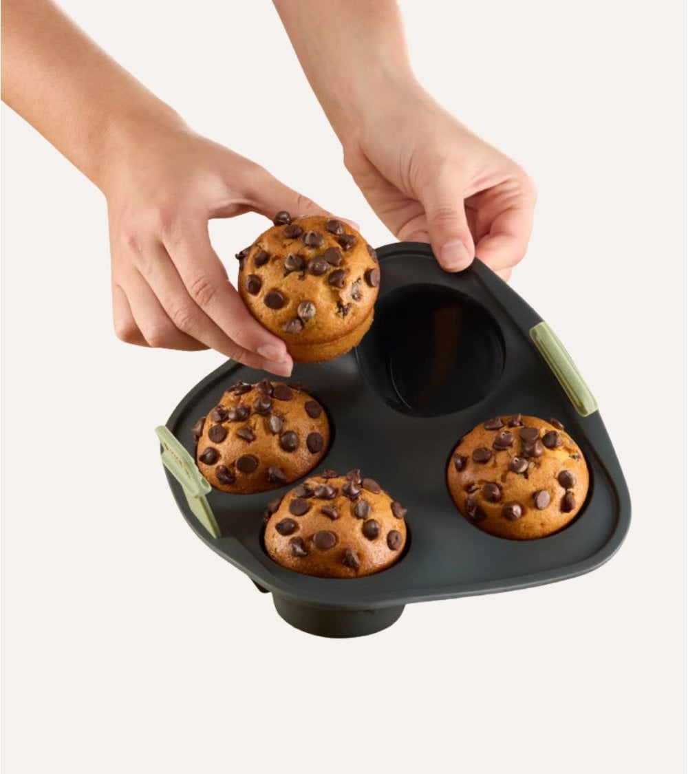 - Cavidades: Cuatro espacios circulares con capacidad perfecta para magdalenas estándar.