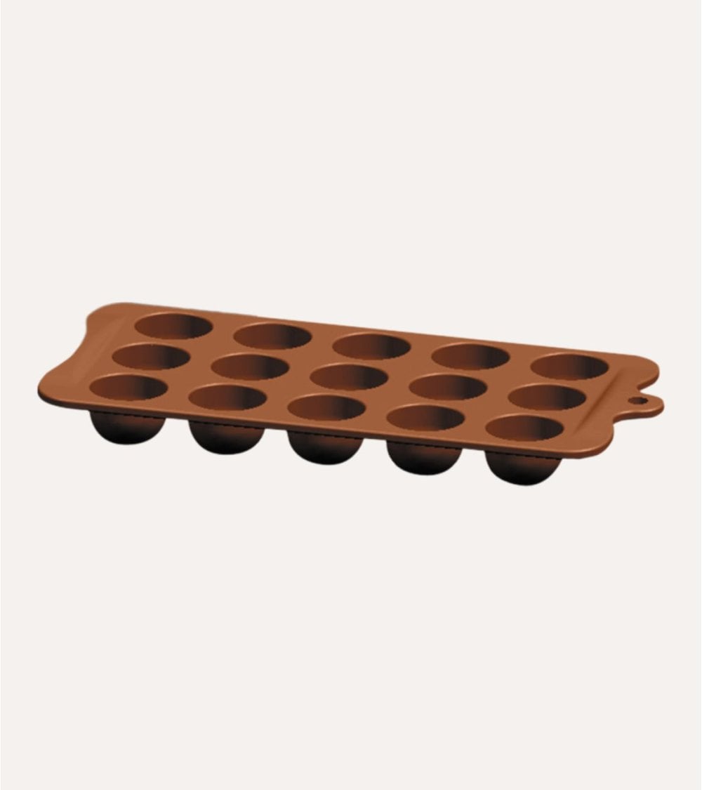 Con un diseño compacto y práctico, este molde cuenta con 15 cavidades redondas con una elegante forma de diamante en relieve, perfecta para dar a tus bombones un aspecto sofisticado y atractivo. Además, su color marrón chocolate realza la experiencia visual al preparar dulces relacionados con el cacao.