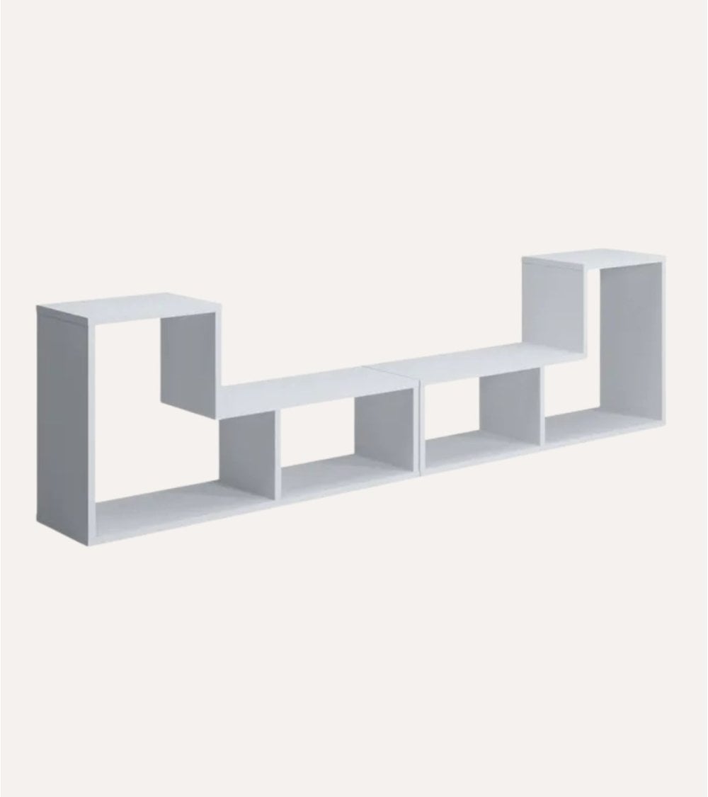 Nuestro Mueble de TV Geométrico no solo es práctico; también ofrece un espacio perfecto para exhibir sus objetos decorativos o almacenar libros y equipos multimedia. Su diseño innovador incluye una sección vertical alta a la izquierda, una estantería horizontal en el centro y compartimentos inferiores que añaden profundidad visual al conjunto.