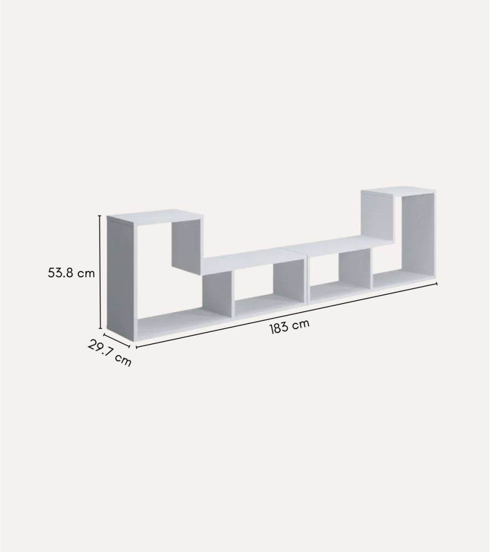 El Mueble de TV Geométrico de Madera es un producto de alta calidad, fabricado en madera para garantizar su durabilidad y resistencia. Con un tamaño de 183.1 x 29.7 x 53.8 cm, es perfecto para cualquier espacio. Disponible en colores blanco y roble, se integra fácilmente en cualquier decoración de hogar. Su diseño funcional incluye varias secciones para un almacenamiento versátil, con compartimentos abiertos y cerrados. Además, su acabado suave facilita la limpieza y el cuidado del mueble.