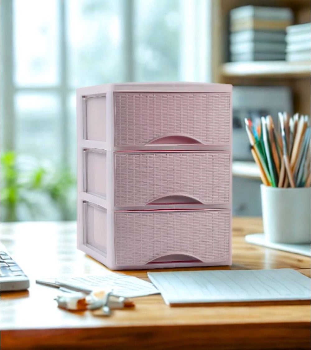 Disponible en varias opciones de tamaño: Pequeño, Mediano y Grande, así como en colores suaves y versátiles como Beige, Verde y Rosa, esta cajonera es ideal para quienes buscan orden sin sacrificar estilo. Su estructura está hecha completamente de plástico resistente, lo que garantiza durabilidad y facilidad de limpieza.