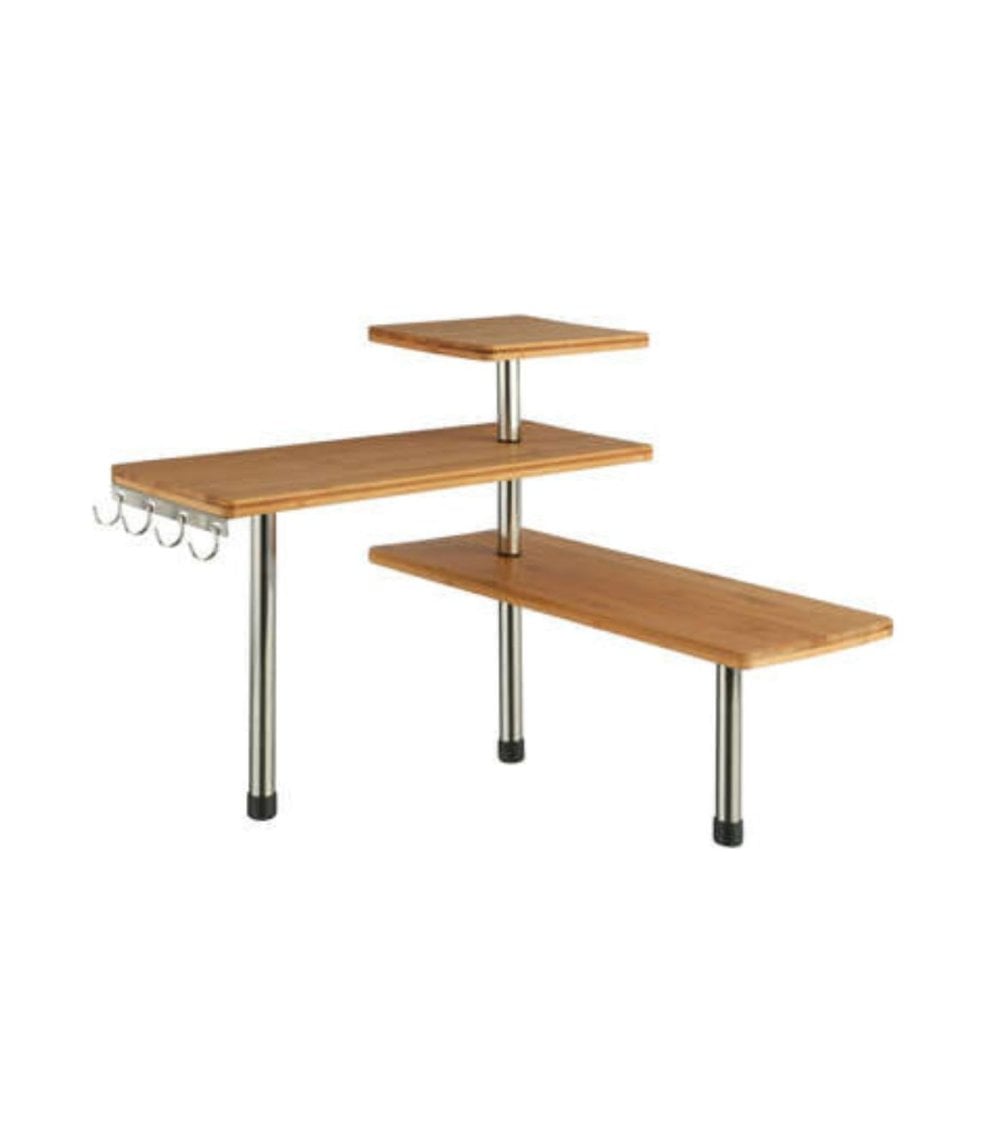 Estante Esquinero de Bambú y Acero Inoxidable 3 Niveles