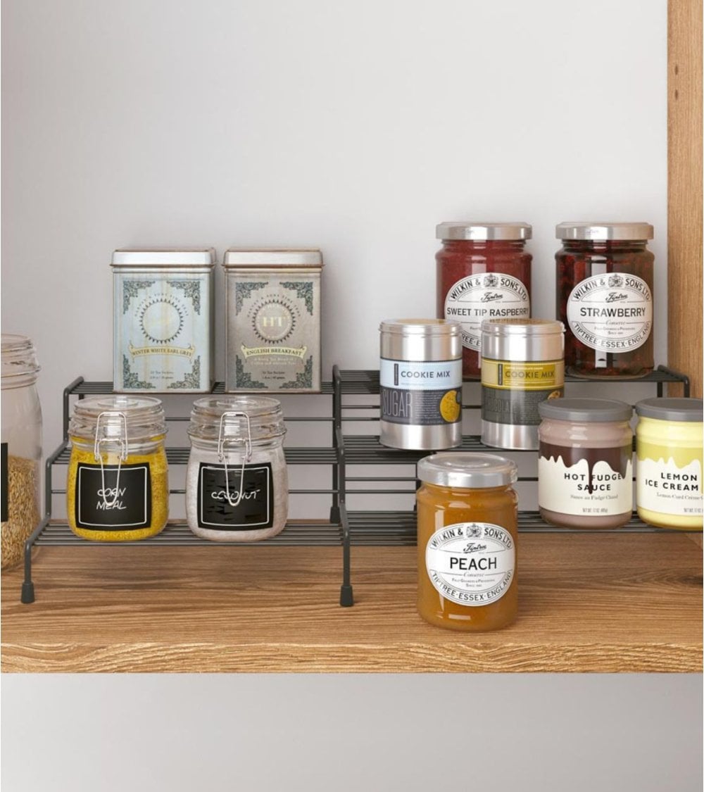 - Compuesto por 2 estantes ajustables que se deslizan uno dentro del otro para adaptarse al tamaño del armario. Los estantes pueden usarse por separado.