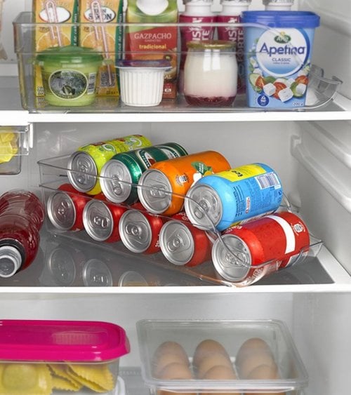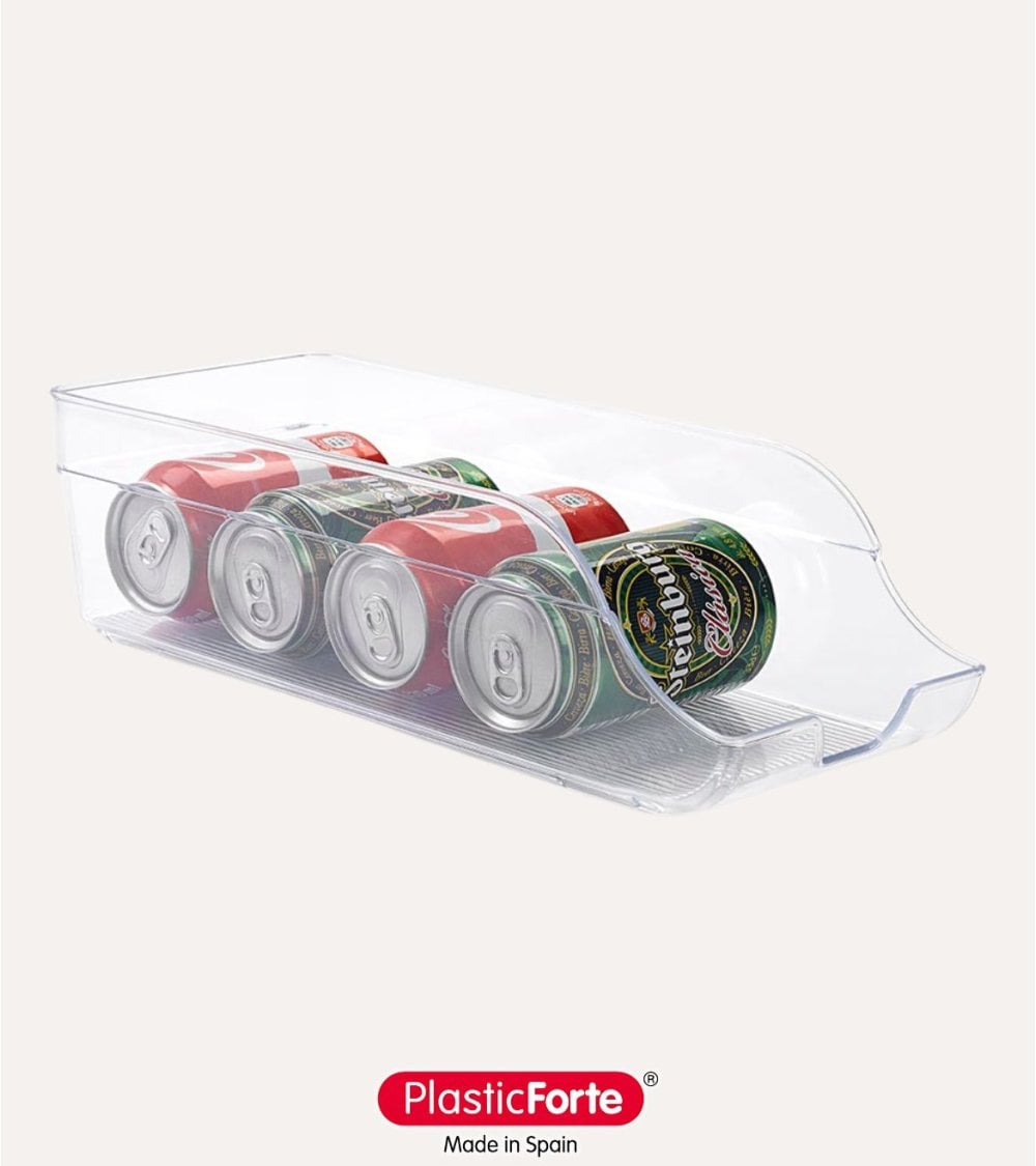 - Capacidad óptima: puede contener hasta cuatro latas estándar, facilitando la organización y evitando el desorden en tu nevera.