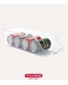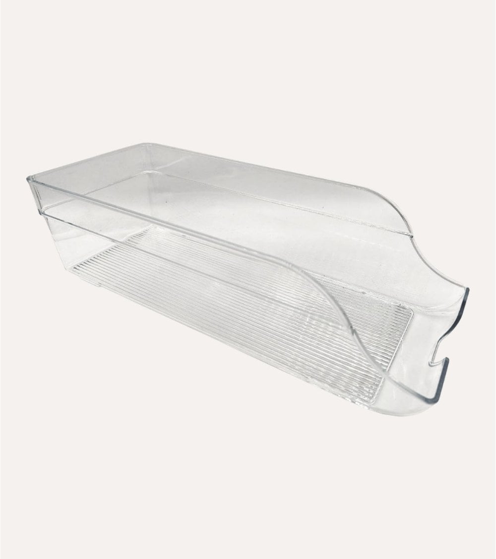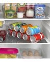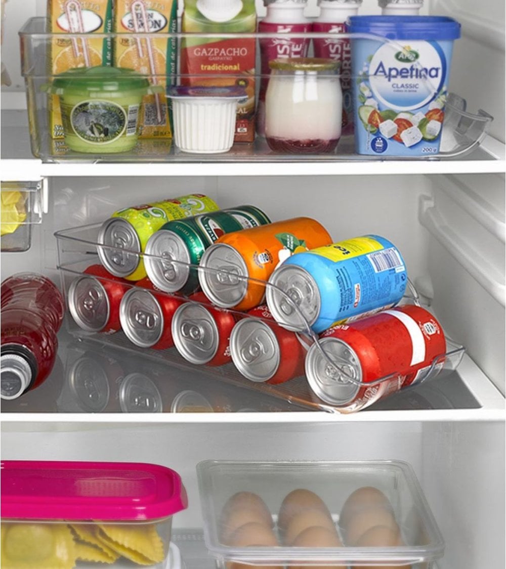Este organizador está diseñado con un material plástico transparente que permite visualizar fácilmente las latas almacenadas sin necesidad de moverlas o abrir compartimentos adicionales. Su forma rectangular con bordes redondeados no solo aporta un toque elegante, sino que también maximiza la capacidad dentro del frigorífico, adaptándose perfectamente a los estantes estándar.